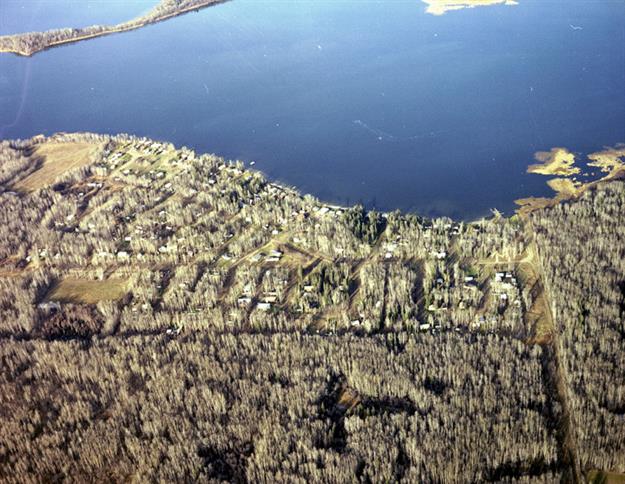 - Aerial view of West Cove, Alberta, taken from the south. Taken October 28, 1980